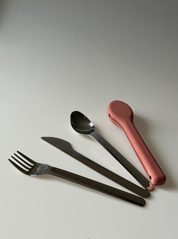 De bestekset wordt geleverd in een handige siliconen beschermhoes. De hoes beschermt het bestekset tegen krassen en beschadigingen.
