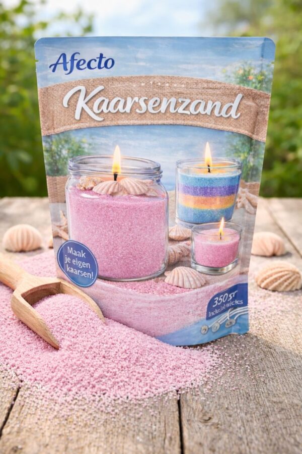 De zachte roze kleur zorgt voor een warme en gezellige uitstraling, perfect voor in huis, op tafel of als creatief cadeau. Dankzij de losse zandstructuur kun je het kaarsenzand steeds opnieuw gebruiken en gemakkelijk combineren met verschillende potjes of schalen.