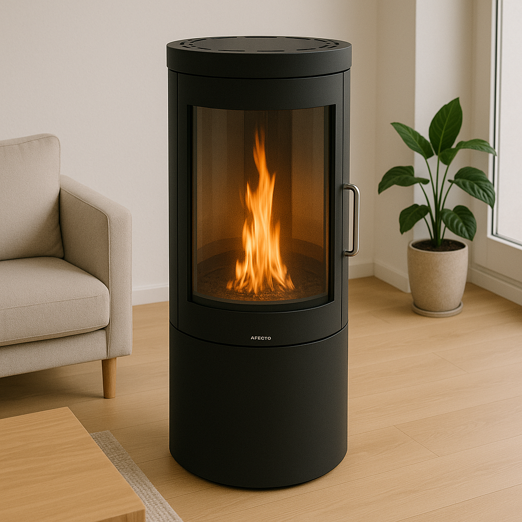 Deze compacte haard past in ieder interieur. Unieke vorm: rond en rondom glas