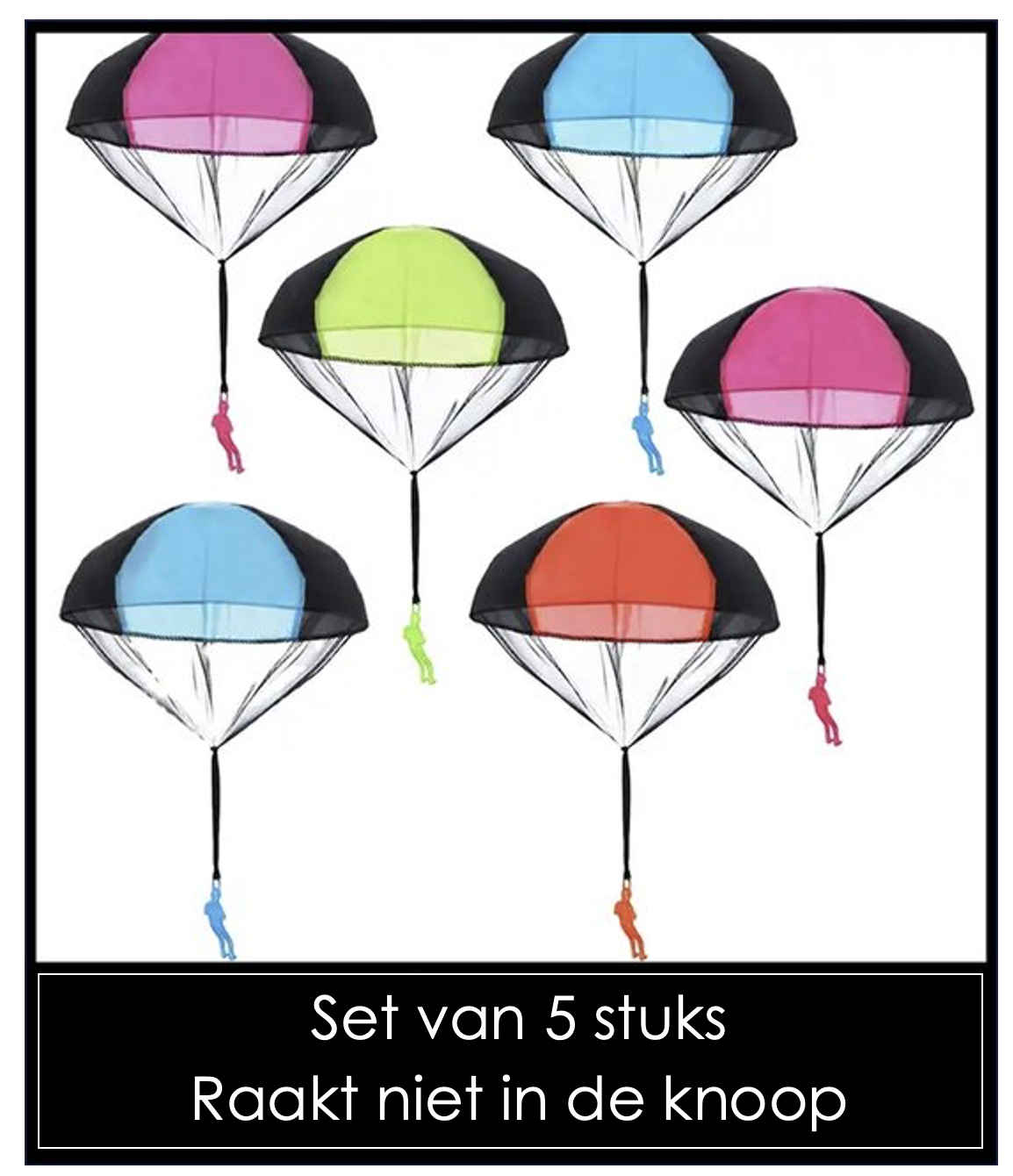 - set van 5 stuks parachute! Gooien maar! Leuk om te geven bij een verjaardagparty.